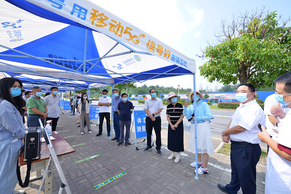 为落实河南省委省政府、教育厅和信阳市委市政府相关工作安排部署,进一步做好校园常态化疫情防控工作,提高防范和应急处置能力,确保师生员工生命安全和身体健康,9月16日下午,学校组织开展了2021年秋季学期开学模拟演练。理事长高云,党委书记褚金海,校长王北生,战略发展咨询委员会主任熊健民,专职副书记施昌海,副校长王志华、王强,工会主席傅洪涛,校长助理高雅、张永志等在校校领导深入现场指导。校长办公室、教务处、学生处、后勤处、保卫处、校医院、宣传部、资产处等部门和各学院党总支书记及教师代表参加演练。
