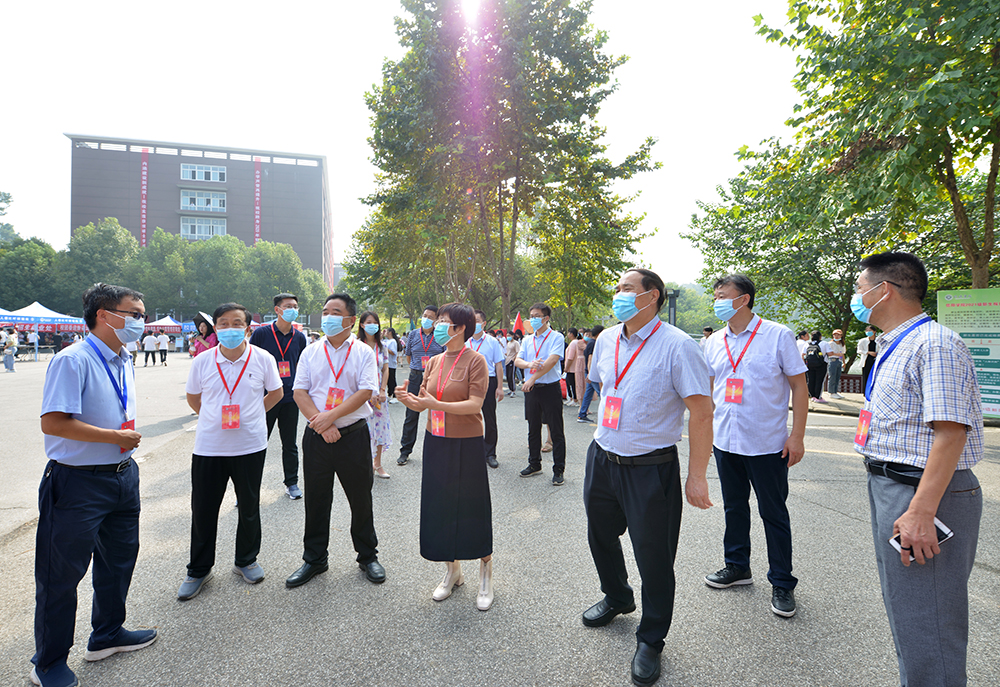 上午,一直牵挂着迎新工作的理事长高云,党委书记褚金海,校长王北生,专职副书记施昌海,副校长王志华、王强,工会主席傅洪涛,校长助理高雅、杨高伟、张永志等在校校领导,在有关部门负责人陪同下,来到迎新报到现场,看望新生及家长,慰问迎新工作人员。校领导逐一走访各学院迎新点和各部门咨询服务点,了解各学院迎新工作进展,对迎新一线干部师生周到细致的服务给予充分肯定,并第一时间向新同学们送去了关心和问候,鼓励他们尽快适应大学生活,励志成长成才。各学院院长、书记等领导班子成员和辅导员也来到迎新现场,欢迎同学们的到来,并指导和开展迎新工作。