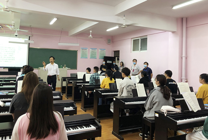 立足教学,以制度确保课堂质量。学院依托校级一流专业《音乐学》,一流课程《中国传统音乐》,思政示范课程《舞蹈》《中国传统音乐》,双语课程《意大利语发音基础》等优势,结合音乐学科专业授课特点,认真研究制定实施《音乐学院2021-2022学年第一学期教学质量监控工作计划》《音乐学院防止教学事故预案》《音乐学院关于成立教学督导工作小组的通知》《音乐学院本科教学工作诊断评估准备工作方案》等工作方案,并组建由院长、教学副院长、专家教授组成的“试卷督查”“毕业论文督查”“教师个人档案督查”“实验实习材料督查”四个小组,对自然班开展“推门听课”和督导反馈。除学期末开展学生、同行、教师评教评学外,每两周进行一次学生教学信息反馈等,对期初、期中、期末制定19项详细检查计划,7项专项检查,每月一次2项教研室检查,同时,组织开展对青年教学名师、院级青年教师教学优秀奖一等奖获得者开展观摩,多举措严抓课堂教学质量。