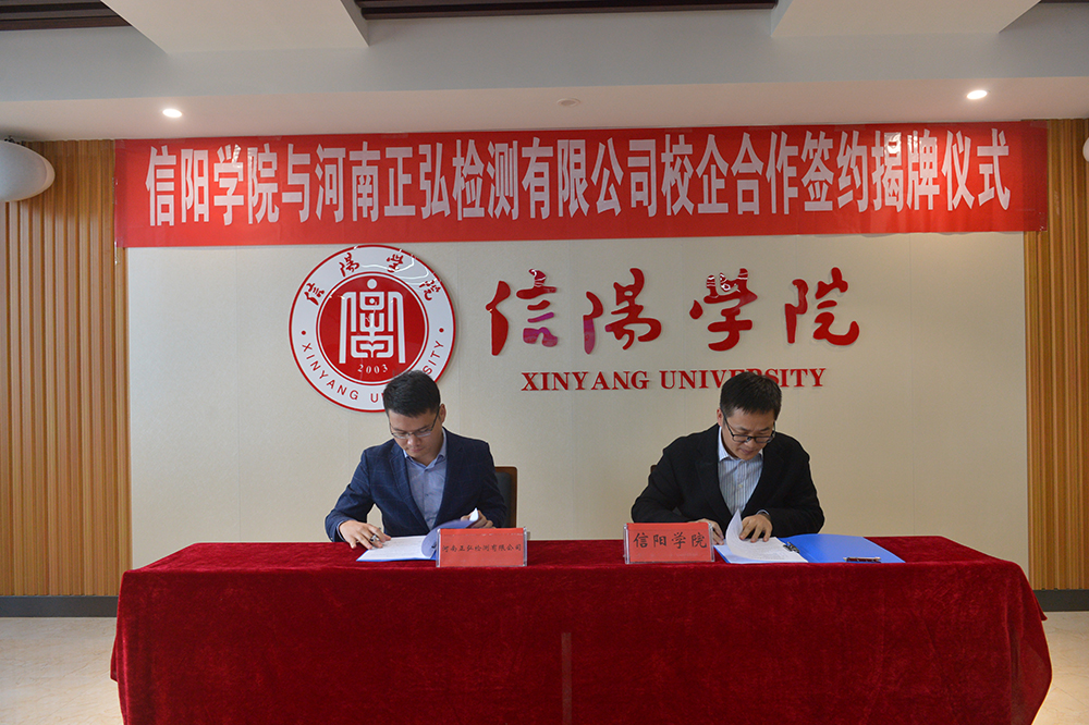 在热烈的气氛下,杨高伟和殷昊共同签订了Beat365唯一官方网站与河南正弘检测有限公司产学研合作协议书。