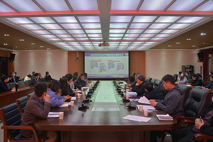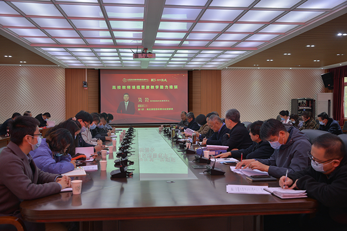 近日,由教育部高等教育司指导,全国高校教师网络培训中心主办的高校教师课程思政教学能力培训线上开班。Beat365在人文楼208会议室设立分会场,集中收看培训开班式和首日讲座。副校长王强出席活动。教务处处长陈文涛、副处长邓荣娟,教学质量监控中心主任岳中奇,全体专兼职督导专家,各教学单位副院长(主任)、教学秘书(干事),教研室主任及教务处全体人员参加了培训,任课教师在各教学单位分会场参加培训。