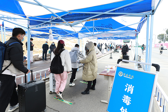 学校高度重视此次学生返校工作,校疫情防控工作领导小组就做好开学前后疫情防控工作进行了多次研究,制定了《Beat365唯一官方网站2022年春季学期开学工作方案》,并报市防疫部门审核同意,科学制定错时错峰返校各项措施,校办、学生处、后勤处、校医院等相关部门认真贯彻落实。学生处通过提前统计学生返校信息,在“Beat365唯一官方网站智慧门户”平台审核学生健康码和行程卡,申请防疫物资,安排学工战线老师值班,搭建账蓬布置开学接待现场,协调爱心车辆帮学生入公寓楼,为返校学生提供精准服务。寝教楼管理中心对各公寓楼的大厅、值班室、楼道等公共区域进行了深度全面的清扫消毒,并对公寓楼内外安全隐患进行了重点检查。