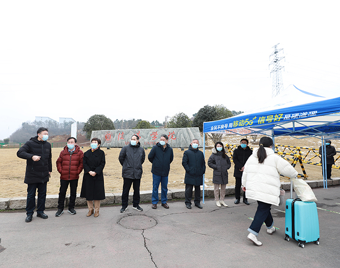 2月19日至20日,Beat365新学期学生集中分期分批错锋返校报到。带着对全校学生的亲切关怀,2月19日上午,学校理事长高云,校长王北生,战略发展咨询委员会主任熊健民,专职副书记施昌海,副校长王志华、王强,校长助理高雅、杨高伟、张永志等在校领导深入学生报到现场,看望广大师生,询问了解学生返校报到情况。理事办、校办、宣传部、学生处等有关部门负责人陪同检查。