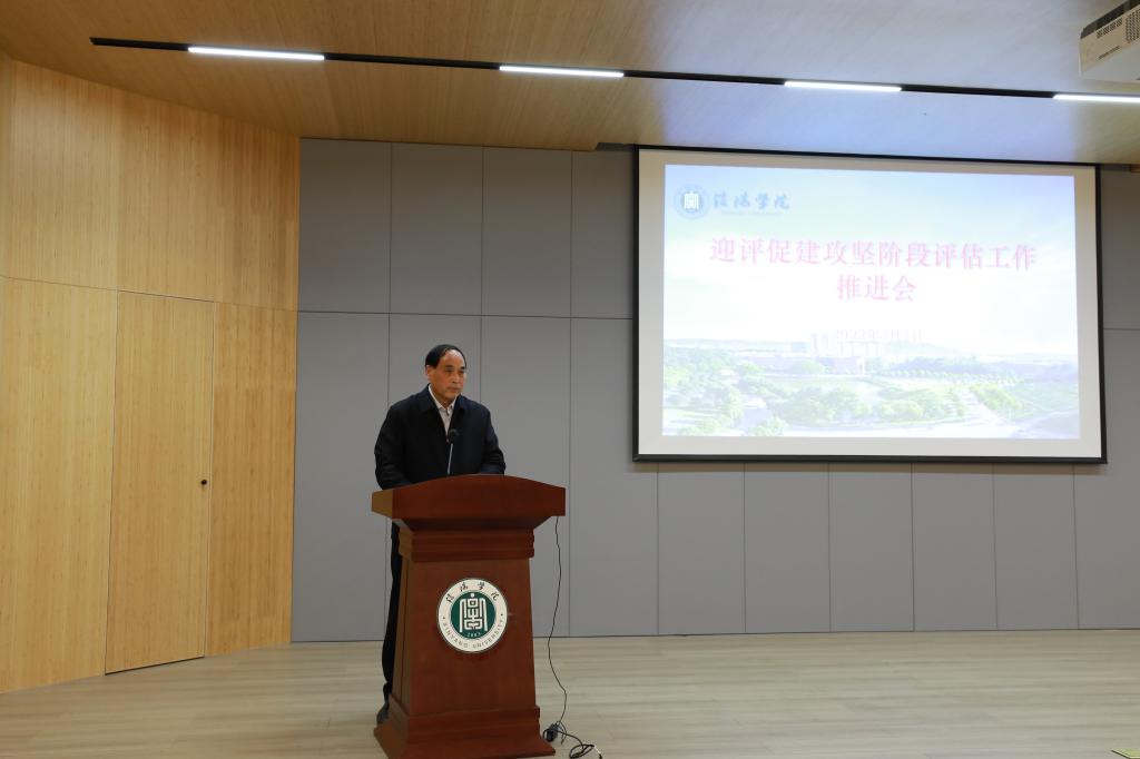 3月1日,学校在图书馆101学术报告厅召开迎评促建攻坚阶段评估工作推进会。理事长高云,党委书记褚金海,校长王北生,战略发展咨询委员会主任熊健民,专职副书记施昌海,副校长王志华、王强,校长助理杨高伟、张永志等在校校领导出席会议。各学院院长、书记、教学副院长、教学秘书,各职能部门负责人参加了会议。王强主持了会议。