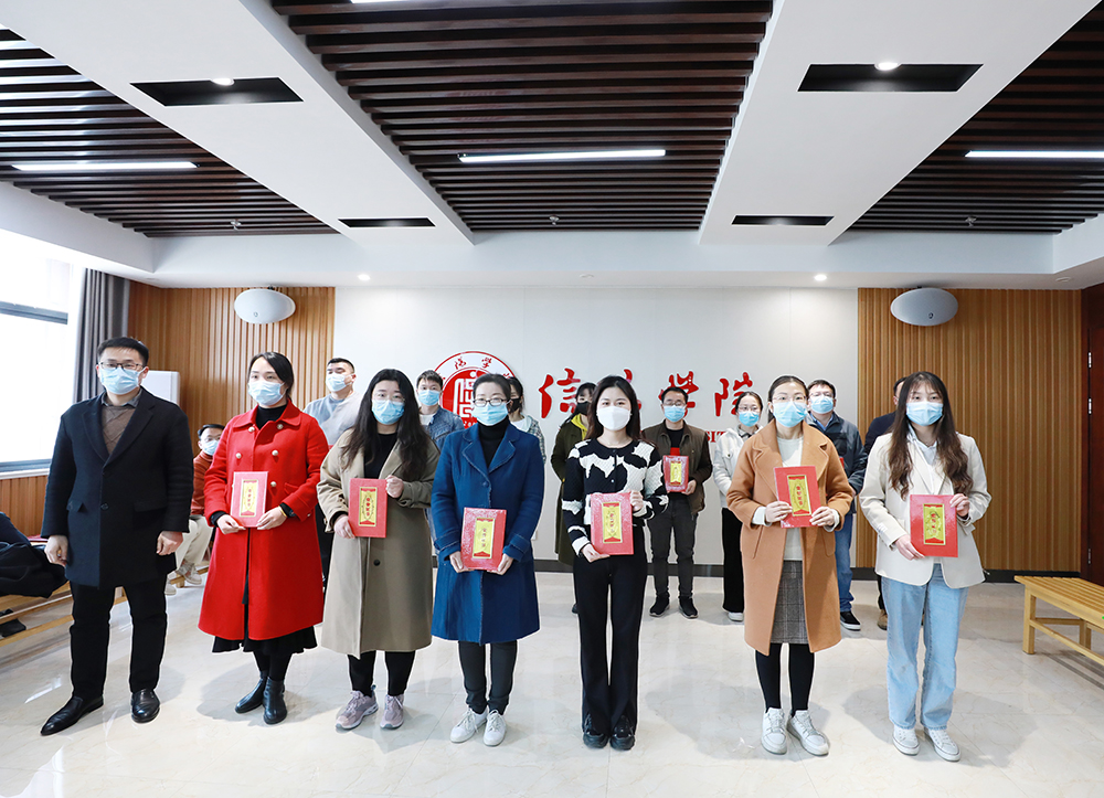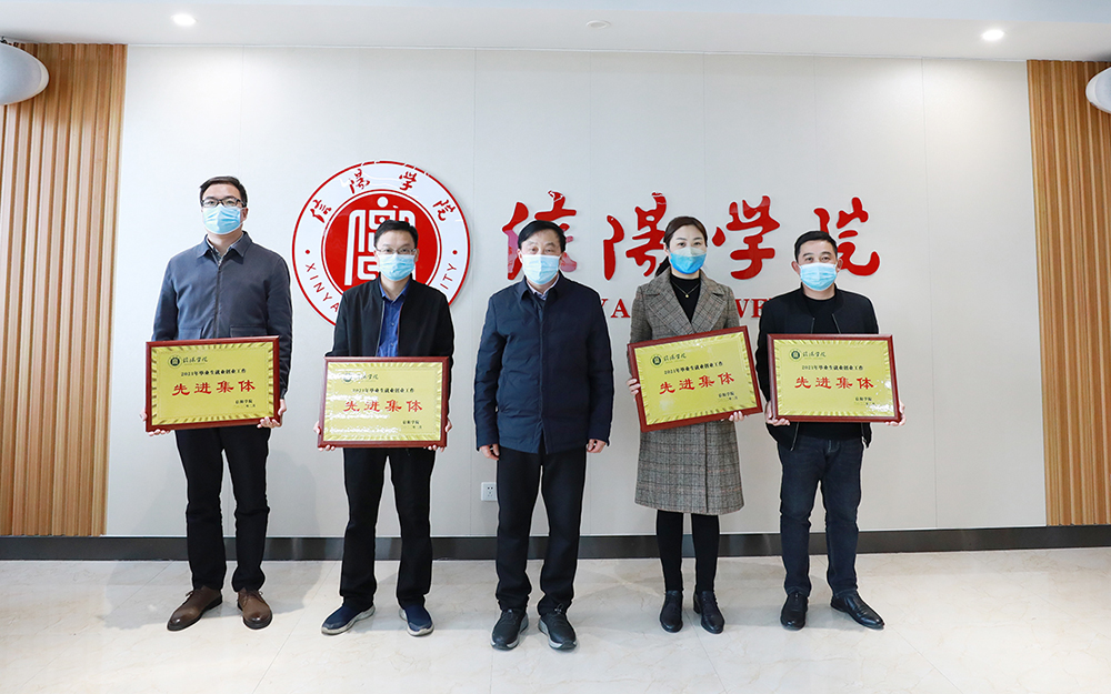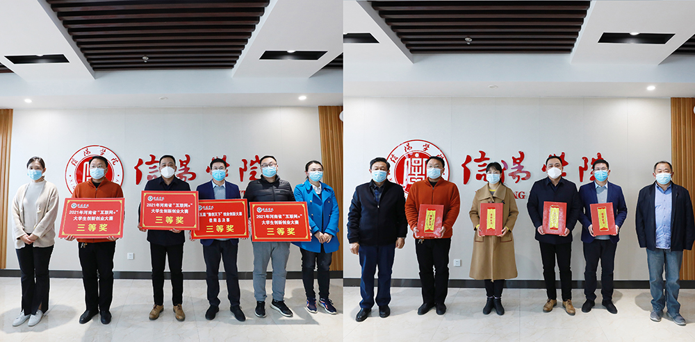 在热烈的掌声中,余婷婷、李肖利为创新创业优秀团队颁奖;陈文涛、江成顺为创新创业优秀指导教师颁奖;杨高伟为2021年就业创业工作先进个人颁奖;王志华为2021年“挑战杯”优秀组织单位颁奖;施昌海为2021年就业创业工作先进集体颁奖。