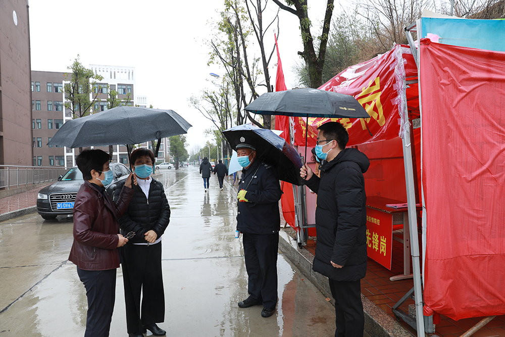 巡查中,校领导对党员先锋岗值班人员和门岗保卫人员认真履行职责表示肯定和赞赏。
