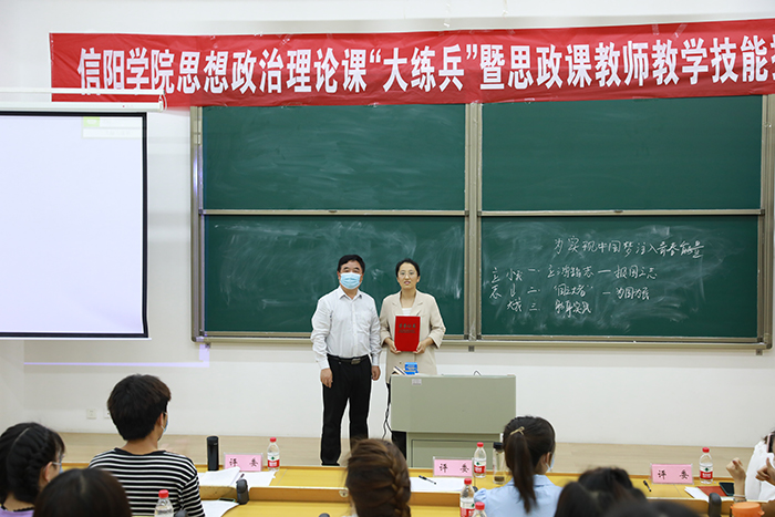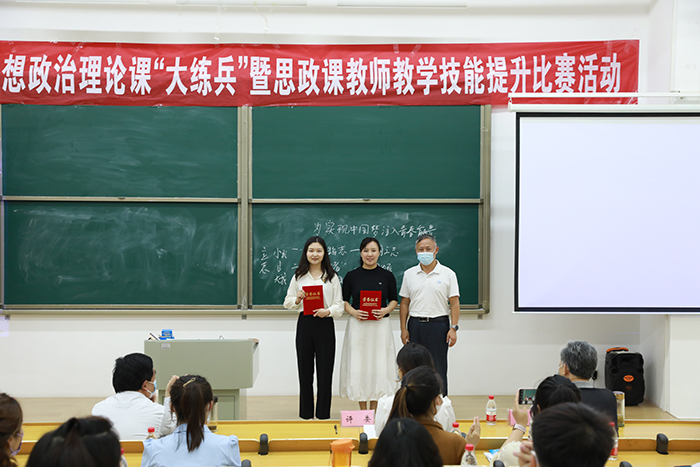 褚金海作总结讲话,对参赛教师坚定的理论自信、扎实的理论水平和较强的课堂驾驭能力给予充分肯定。他指出,思政课教师教学技能提升比赛是进一步贯彻落实习近平总书记在学校思想政治理论课教师座谈会上的重要讲话精神,推进习近平新时代中国特色社会主义思想进教材、进课堂、进头脑,抓好高校思想政治理论课教师队伍建设、全面加强思想政治理论课建设的重要举措。他结合习近平总书记在中国人民大学调研时的重要讲话精神,强调思想政治理论课能否在立德树人中发挥应有作用,关键看重视不重视、适应不适应、做得好不好。思政课的本质是讲道理,要注重方式方法,把道理讲深、讲透、讲活。老师要用心教,学生要用心悟,达到沟通心灵、启智润心、激扬斗志。全体思政课教师要认真贯彻落实习近平总书记的重要讲话精神,学好新思想,领悟新精神,站稳新时代的思政课讲台。