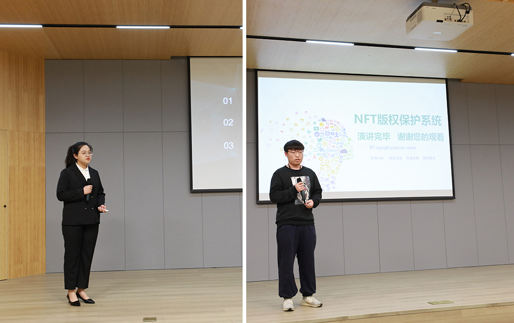 决赛分上、下半场举行,上半场为科技创新类、城乡治理类项目,下半场为文化创意类和乡村振兴类项目。比赛中,各团队负责人通过PPT讲解、播放演示视频、展示实物模型等方式,进行了创业项目路演,对项目设计、创业背景、产品服务、市场分析与营销策略、财务融资等内容做了详细讲解,并回答了评委提问。选手们独特的创意、精彩的演讲、出彩的答辩,赢得了现场评委及在座学生的热情赞扬。