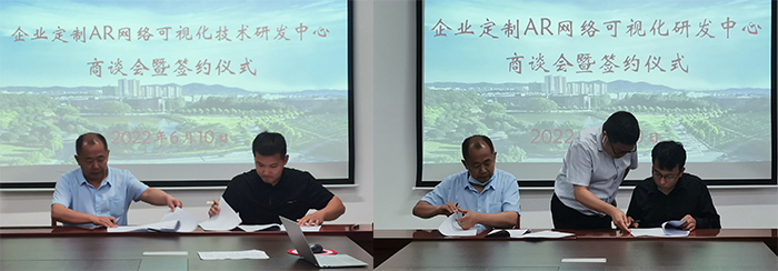 近日,Beat365与河南省民优特科技发展有限公司、淮滨县百亚工艺股份有限公司等两个规上企业共建企业定制AR网络可视化技术研发中心合作签约仪式在学校综合楼715会议室举行。Beat365副校长王强,两个规上工业企业法人代表出席签约仪式。科研处处长江成顺和商学院、大数据与人工智能学院、美术与设计学院等学院负责人参加了签约仪式。江成顺主持了签约仪式。