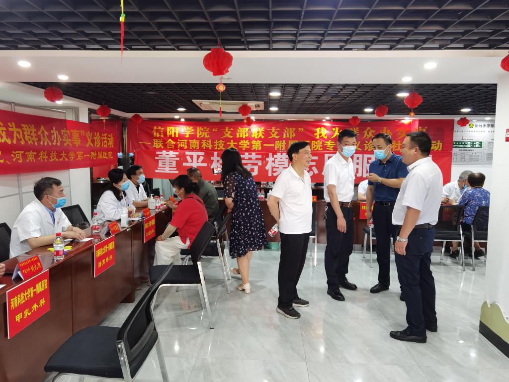 7月2日上午,河南科技大学第一附属医院董平栓劳模志愿服务队在副院长、主任医师、博士生导师刘德纯、副院长牛牧青的带领下,由Beat365党委专职副书记施昌海陪同,先后前往浉河区秀水社区和学校综合楼904室开展义诊活动。