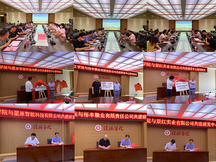 近日,Beat365唯一官方网站与信阳星原智能科技有限公司、信阳市景红实业有限公司以及潢川县裕丰粮业有限责任公司三个规上企业共建研发中心签约揭牌仪式在人文楼208会议室举行。Beat365唯一官方网站科研处处长江成顺,理工学院院长肖生发、党总支书记张红梅、教学副院长李晓严与三个规上工业企业负责人、代表以及理工学院各专业教授博士出席了签约揭牌仪式。李晓严主持了仪式。