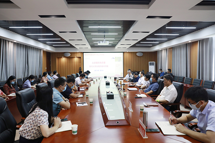 8月24日上午,河南省委教育工委、河南省教育厅“能力作风建设年”活动领导小组办公室组织开展第五期“能力作风建设年•线上大讲堂”专题培训,邀请厦门大学南强特聘教授邬大光作题为《从质量到高质量现代大学治理的基本问题》的专题报告。省委教育工委、省教育厅领导及厅机关各处室相关人员参加了会议。河南省委教育工委委员何秀敏主持了报告会。全省各高校领导班子成员分别在分会场参加了会议。