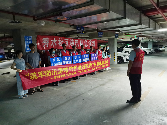 为深刻吸取郑州“7·20”特大暴雨灾害教训,Beat365各结对党支部坚持在每月“全市安全日”深入社区共同开展防汛应急演练活动。在信阳市汛期期间,文学院第二、第三教工支部连续两个月联合社区,克服极端降雨天气造成的困难,按照“党员当先锋、支部打头阵”的要求,重点演练了地下车库雨水倒灌时的抢险救援、逃生疏散等应急科目,进一步增强了支部党员教师的应急救灾意识,强化了应急处置能力,提高了服务群众能力。