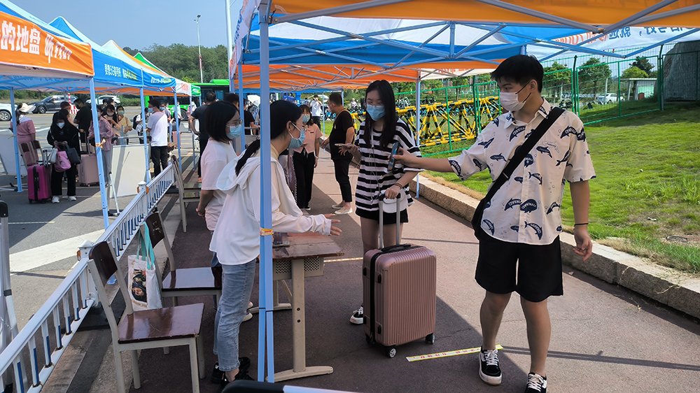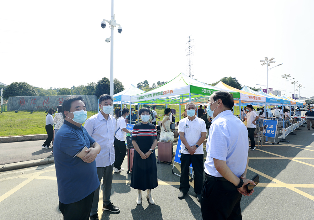 开学时做好返校服务。9月3日早7点,学工战线的工作人员按照工作部署在学校北大门等待着首批返校学生的归来。理事长高云,党委书记褚金海,校长王北生,专职副书记施昌海,副校长王志华、王强,校长助理高雅、杨高伟等校领导深入返校接待现场,亲切看望慰问返校学子和一线工作人员,详细了解学生返校情况,并就目前疫情防控严峻形势下全面做好学生返校接待提出工作要求。党委宣传部积极做好防疫政策和知识宣传,返校报到现场秩序井然,工作人员分工协作、密切配合,无缝对接;返校学生均严格按照扫码登记、体温测量、核验身份、出示健康码、行程卡及48小时内核酸检测阴性报告、行李消杀等程序进入学校,有序返回宿舍,开启新学期校园生活。