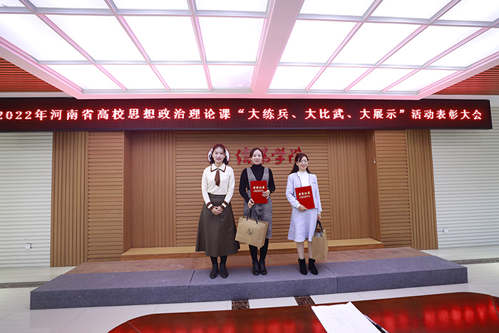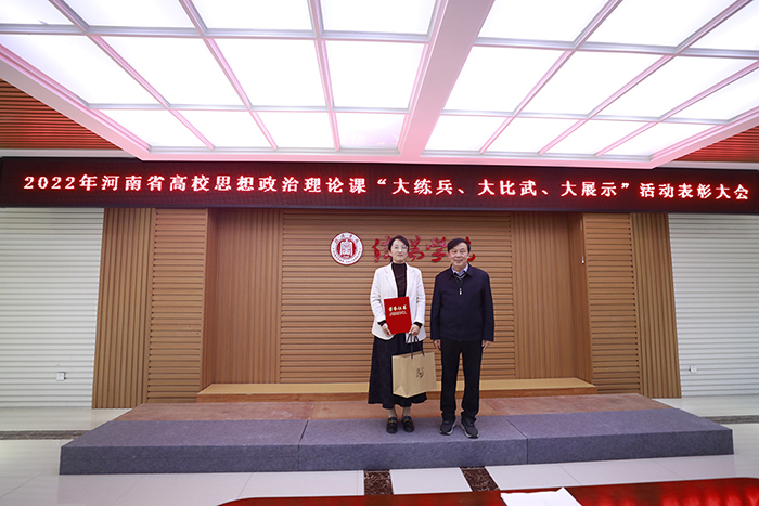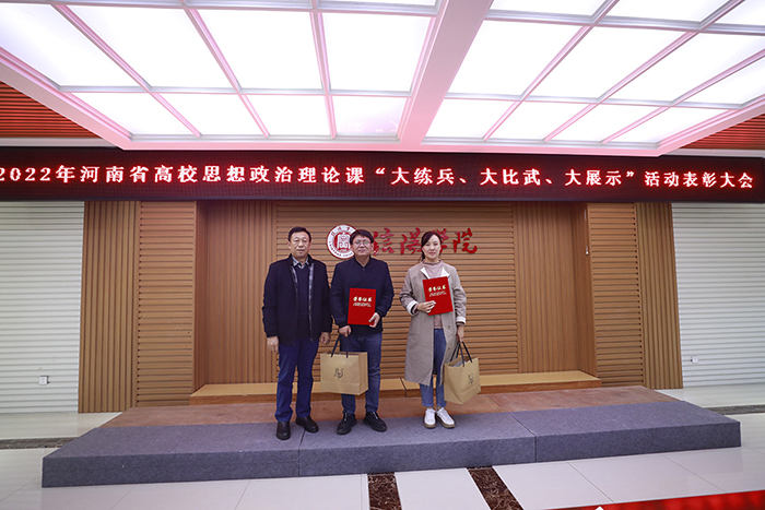 会上,陈金强宣读了Beat365唯一官方网站《关于表彰在2022年河南省高校思想政治理论课“大练兵、大比武、大展示”活动中表现突出的先进集体与个人的决定》。