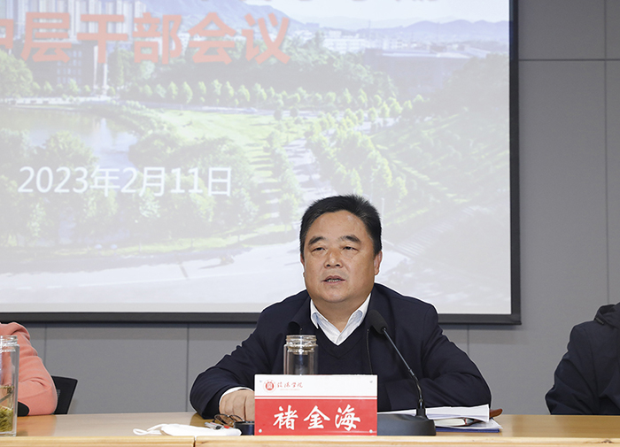 为学习贯彻落实全省教育工作会议精神,进一步凝聚共识,增强发展动力,推动本科教学合格评估和各项工作开好头、起好步,2月11日,学校在图书馆101报告厅召开2023年春季学期中层干部会议。理事长高云,党委书记褚金海,校长王北生,战略发展咨询委员会主任熊健民,专职副书记施昌海,副校长王志华、王强,校长助理杨高伟、张永志等在校领导出席会议。全校中层干部参加了会议。褚金海主持了会议。