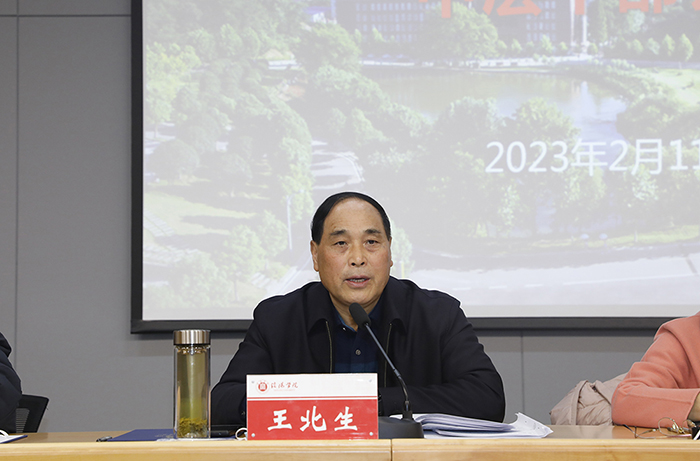 王北生强调,2023年,是全面贯彻落实党的二十大精神的开局之年,也是学校事业发展的关键一年。我们要迎接教育部本科教学工作的最终评估,深入实施学校“十四五”事业发展规划,扎实推进“转型发展”系统工程,确保各项重点工作取得实效,事关学校全局和长远发展。本学年要做好8个方面35项工作。一是聚焦重点工作,统筹事业发展。要把迎评促建工作作为重中之重,抓紧抓实,落稳落细,确保经得起考核和检验。二是深化教学改革,打造一流本科教育。三是加强科技创新,提升科学研究水平。四是坚持人才强校,加强师资队伍建设。五是坚持以生为本,促进学生成长成才。六是加强文明校园建设,推进文化传承与创新。七是完善运行机制,提升服务保障水平。八是强化政治统领,筑牢学校发展根基。