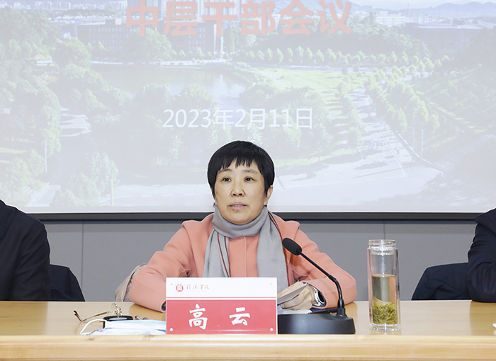 高云发表讲话。她表示,2023年是很重要、很关键的一年。从政治大局上讲,是开局之年,为落实党的二十大精神开局起势;从学校层面来讲,是决战之年,我们要迎来教育部本科教学工作的评估验收。所以,我们既要开好头,也要收好尾,在新年新征程拥有良好开端,更要为评估画上一个圆满句号。