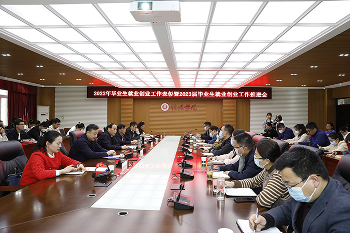 为深入学习贯彻党的二十大精神,全面落实党中央、国务院和省委、省政府关于高校毕业生就业创业工作的决策部署,总结回顾过去一年毕业生就业创业工作,科学研判当前毕业生就业面临的形势,安排部署学校今年毕业生就业创业工作,3月7日,学校2022届毕业生就业创业工作表彰暨2023届毕业生就业创业工作推进会在人文楼208会议室召开。校长王北生、党委专职副书记施昌海、副校长王志华、校长助理杨高伟出席会议。招生就业处、学生工作处、团委负责人,各学院党总支书记、学工负责人,2023届全体毕业班辅导员、受表彰人员以及招生就业处全体工作人员参加了会议。杨高伟主持会议。