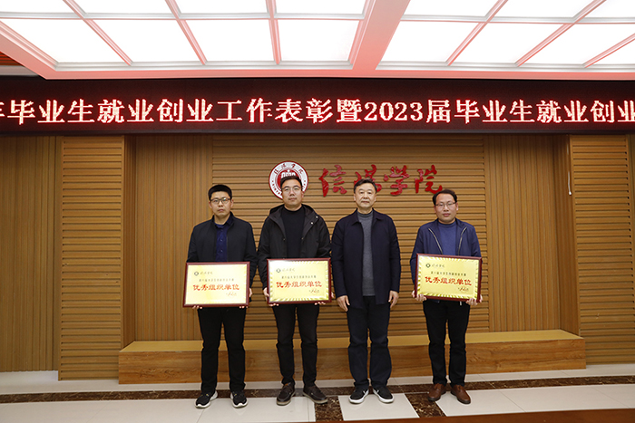 王志华宣读《关于表彰第八届大学生创新创业大赛获奖团队和指导教师的决定》《关于表彰2022年就业创业工作先进集体和个人的决定》,并对获奖单位及个人表示祝贺。