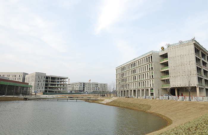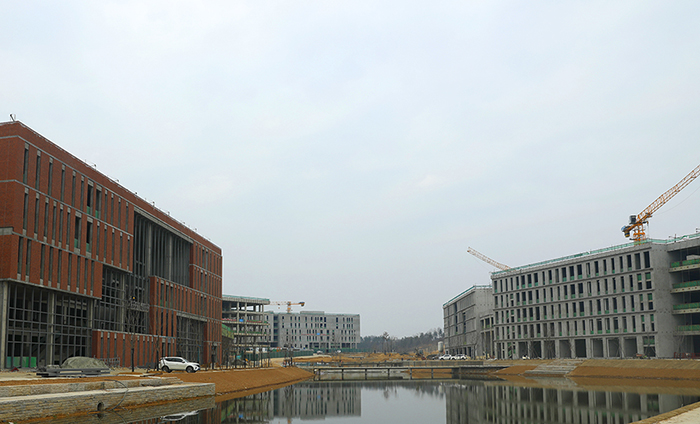 学校南湖新校区目前一期已开工建设10栋楼,分别为现代教育中心、图书馆、教学楼、学生公寓、学生食堂及生活中心等,主体建筑已经全部封顶,正在进行外墙装饰、室内装饰和景观工程建设,一座“现代化、智慧化、生态化”的美丽校园即将崭新亮相。