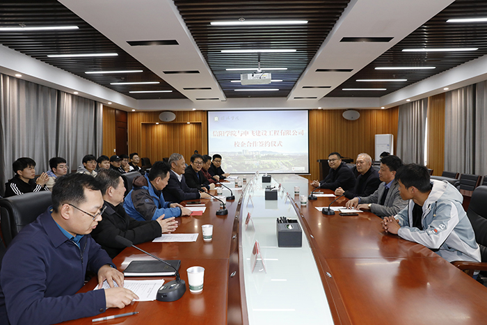 王强致欢迎辞,对申飞建设工程有限公司各位来宾表示热烈欢迎,并简要介绍了学校的发展历程、办学成果及新校区建设。他指出,土木工程学院通过与名校湖北工业大学联合办学,取得了突出成果,希望双方在学生就业、人才培养、硕士学位立项建设等方面深入合作,创新产学研融合方式,实现优势互补、资源共享、互惠互利、共同发展。