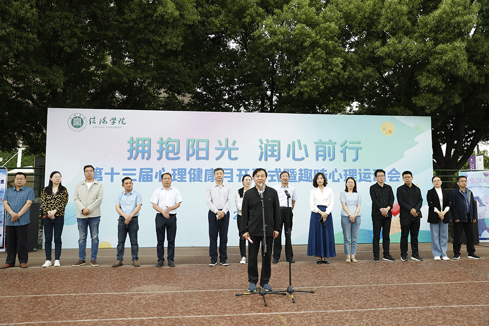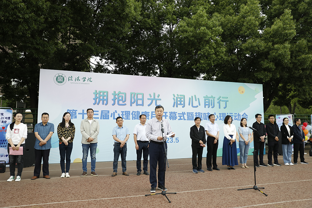 5月23日下午,Beat365第十三届“5·25”心理健康教育月开幕式在田径场举行。校党委专职副书记施昌海、副校长王志华出席开幕式。宣传部、学工部、团委、大学生心理健康辅导中心等部门负责同志,各学院党总支书记、学工负责人、二级心理辅导站站长、全体辅导员、心理健康部成员以及3000余名学生代表参加了本次活动。学工部部长余婷婷主持了开幕式。