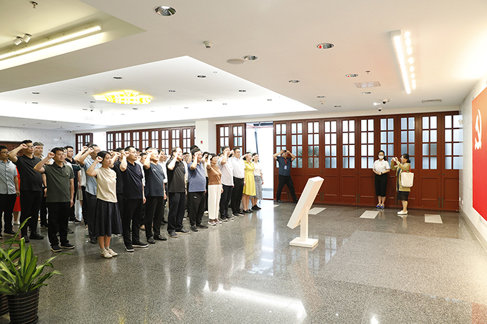 7月4日下午,学员们走进中共一大会址纪念馆,在鲜红的党旗前重温了入党誓词,观看了弥足珍贵的历史照片和文献资料。在纪念馆内,一件件珍贵的革命文物、一份份厚重的历史资料、一个个复原的历史场景,全面展现了我们党的光荣历史、奋斗历程以及辉煌成就,让大家更加深切地感受到中国革命胜利的来之不易、我们党百年来奋斗的艰苦卓绝和伟大建党精神的历久弥新。