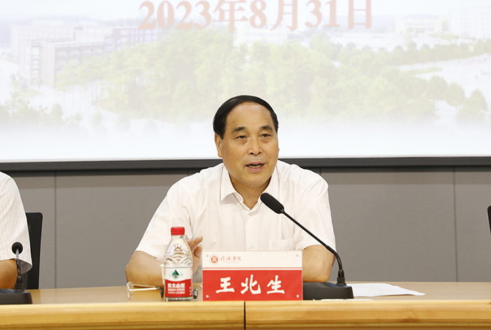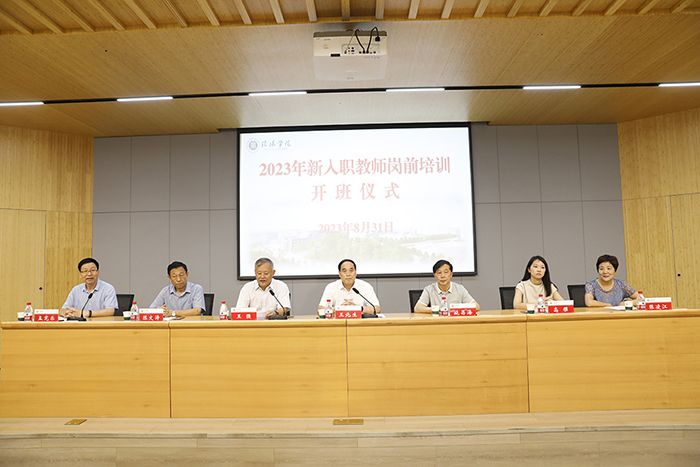 8月31日上午,学校在图书馆101举行2023年新入职教师岗前培训开班仪式。校长王北生,专职副书记施昌海,副校长王强,校长助理高雅出席开班仪式。教务处处长陈文涛,人事处处长张凌江,教师教学发展中心主任孟宪乐等部门负责同志和今年新入职教师参加了开班仪式。王强主持了开班仪式。