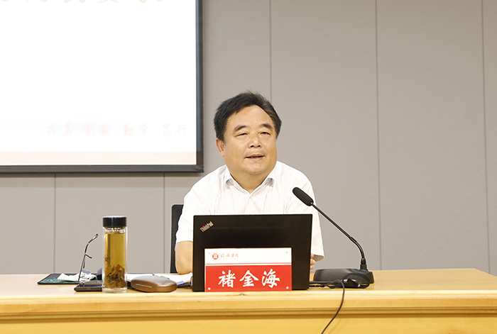 开班仪式结束后,校党委书记褚金海作了题为《学为人师--老师的内涵及职业发展要求》的专题报告。从“老师的起源、发展与职责定位”“大学精神与师魂”“习近平总书记对老师的殷切期盼与要求”和“怎么样成为一名好老师”四个层面进行精辟阐释。他带领新进教师全面了解了教师职业的发展过程,同时,也让新进教师深刻认识到党和国家对新时代教师所寄予的殷切希望和要求,为大家成长为一名集初心与使命、责任与担当、荣耀与自豪于一身的新时代好老师指明了方向。整场报告引经据典,内涵丰富,深入浅出,对新进教师师德师风建设和专业发展具有重要指导作用。