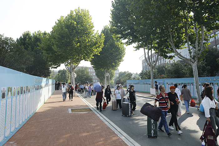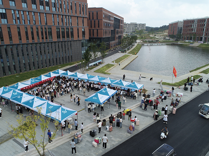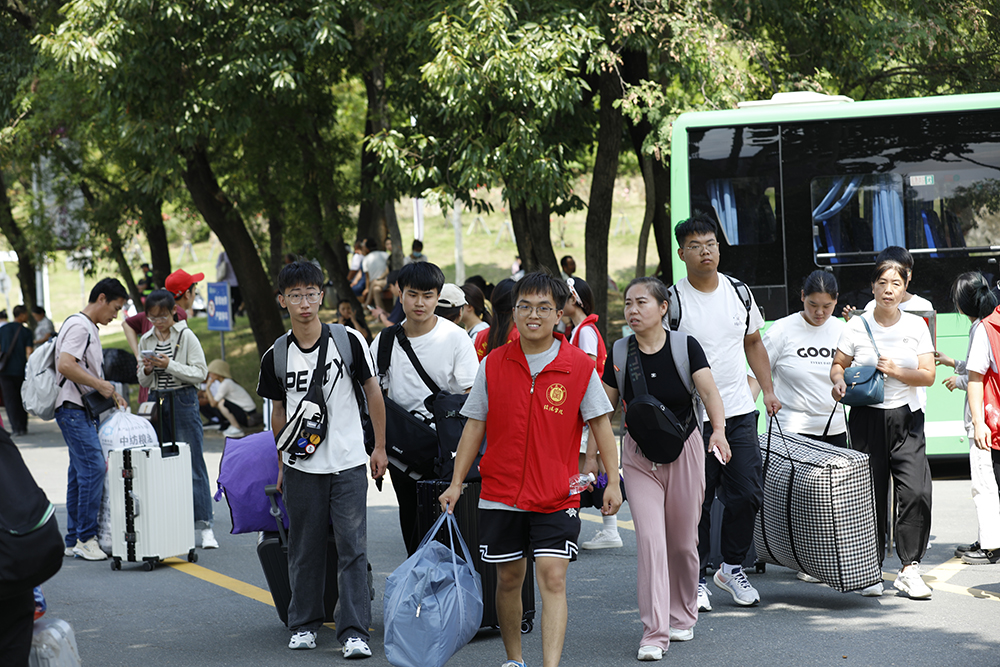 朝阳初升,迎新工作如火如荼地开展。学校工作人员一大早便已前往火车站、高铁站和汽车站,满怀期待地迎接新同学的到来;志愿者们个个精神饱满,热情亲切地带领新生办理入学手续,答疑解难;接驳车来回穿梭在校园中,帮助新生引路、转运行李,为新同学减轻了许多负担;校卫队在校园各道路进行交通疏导,引导学生家长车辆有序停放,全力保障校内交通顺畅。