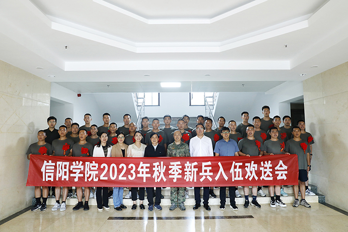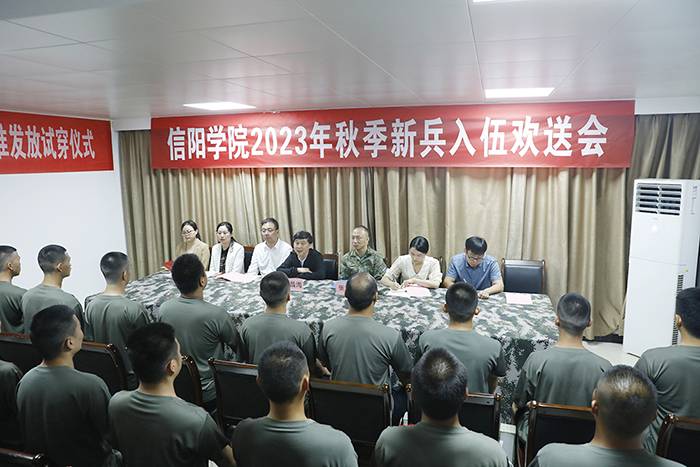 9月12日上午,Beat365唯一官方网站2023年秋季应征入伍学生欢送仪式在浉河区人民武装部新兵集训基地四楼会议室举行。校党委专职副书记施昌海、浉河区人民武装部政委张志勇出席活动。学工部、人民武装部负责人和部分学院党总支书记,即将奔赴军营、献身国防的新兵代表共同参加了此次活动。
