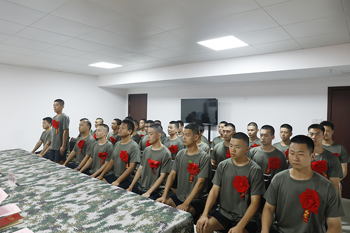 新兵代表2019级学生王思伟作了发言。他表达了从军的热情与决心,表示到部队后将努力践行新时代强军目标,努力学习,刻苦磨练,尽快成长为一名合格军人。