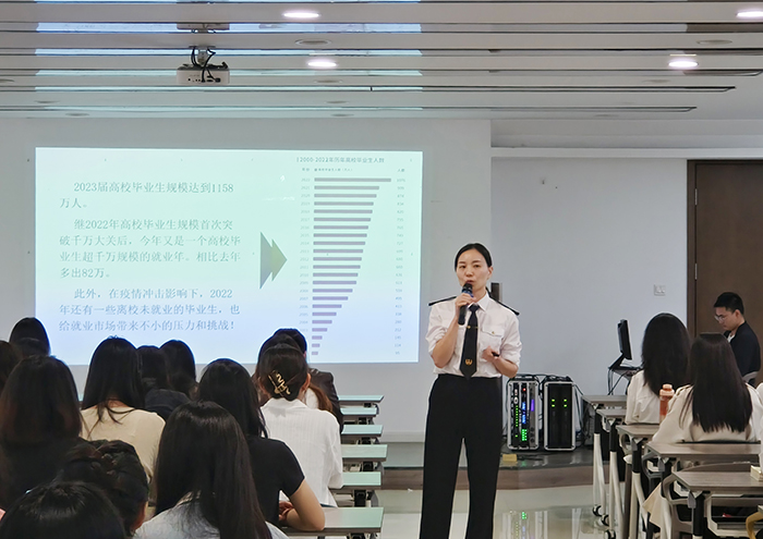 刘丹就有关招聘业务进行了详细说明,并面向外语、商学、教育等有关专业2024届毕业生进行了招聘宣讲,受到学生的欢迎和好评。