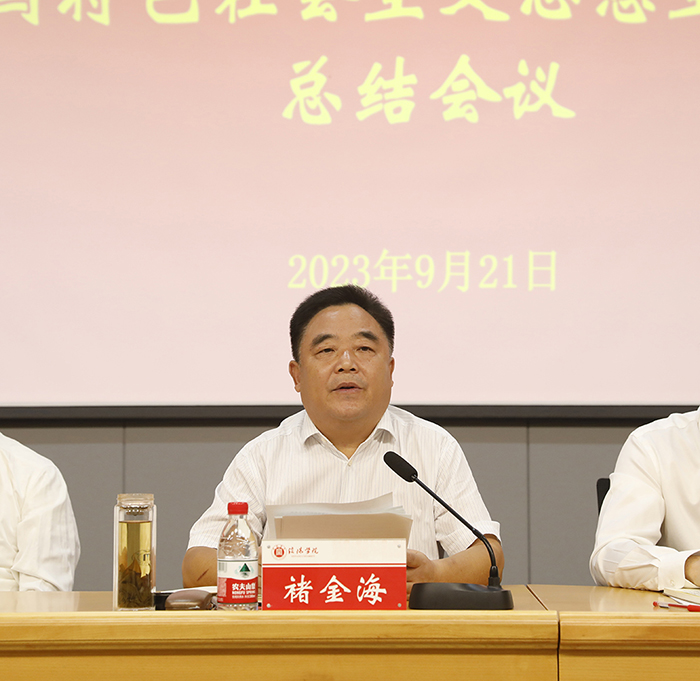 褚金海提出,在学校内涵建设、转型发展的新阶段,我们要不断巩固深化主题教育成果,围绕学校重点工作,推动学习贯彻习近平新时代中国特色社会主义思想常态化、经常化,持续深化“以学铸魂、以学增智、以学正风、以学促干”。他要求,我们要扎实做好理论武装的深化、内化和转化工作,持续深化以学铸魂;要强化调研成果的转化运用,成为促进学校事业发展的有力举措;要持续推进整改落实,以实际成效取信于师生、服务于师生,助推学校事业高质量发展;要进一步加强新时代干部队伍建设,培养一大批政治过硬、适应新时代要求、具备领导学校高质量发展能力、拥有“高境界、大格局、真本领”的高素质干部队伍。