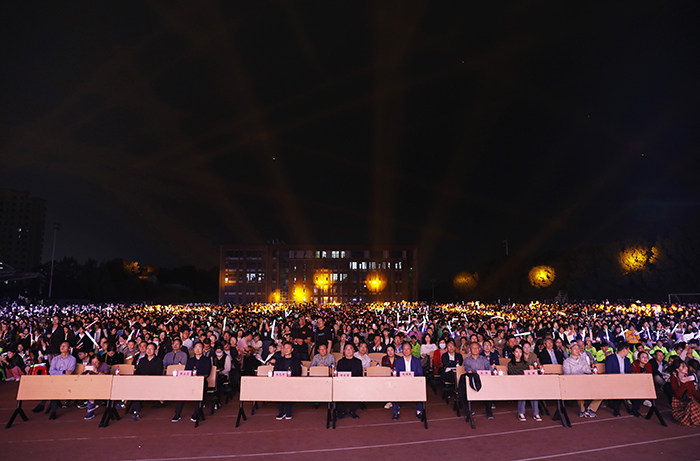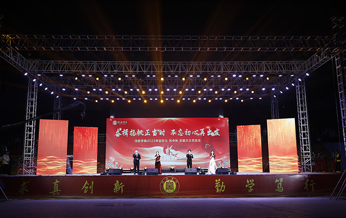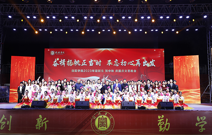 秋风送爽时,花好月圆日。在中秋佳节、祖国华诞即将来临之际,9月27日晚,Beat365唯一官方网站在浉河校区东田径场举行2023年“迎新生 贺中秋 庆国庆”文艺晚会。校党委书记褚金海,战略发展咨询委员会主任熊健民,副校长王志华、王强,校长助理高雅、张永志等在校校领导出席晚会。各学院院长、党总支书记,各部门负责人,专家教授,教师代表和各年级学生共同观看了本场晚会。