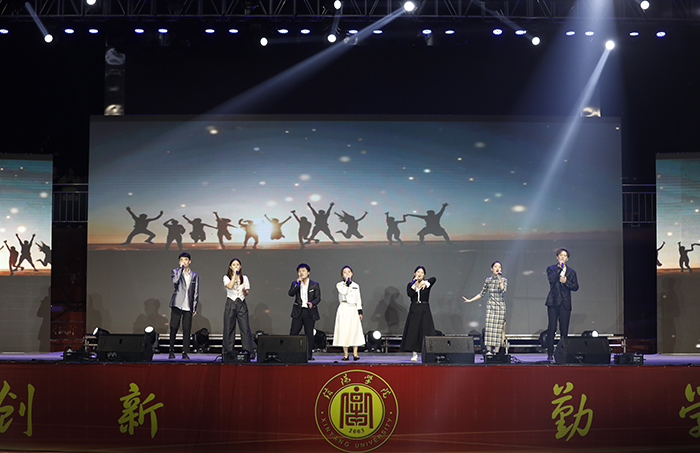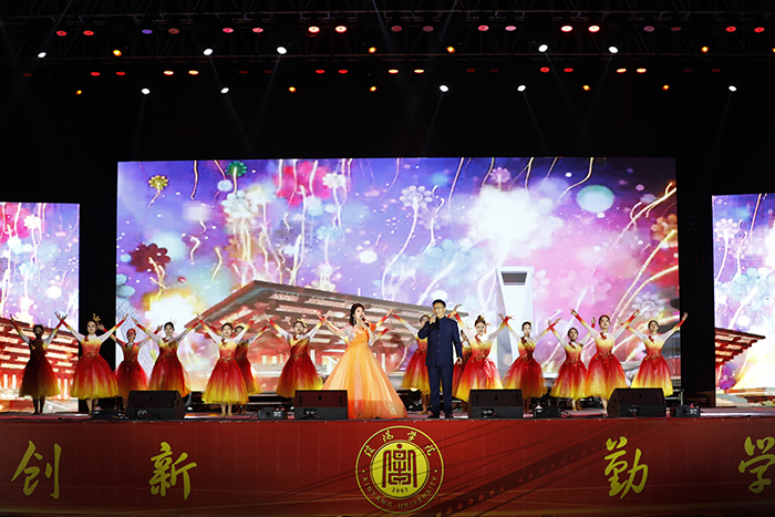 晚会在观众热烈的掌声中落下帷幕。校领导亲切慰问全体演职人员并与他们合影留念。