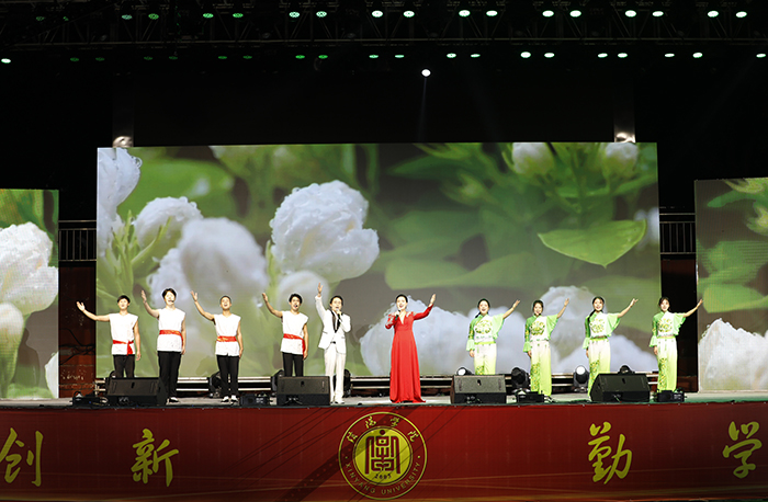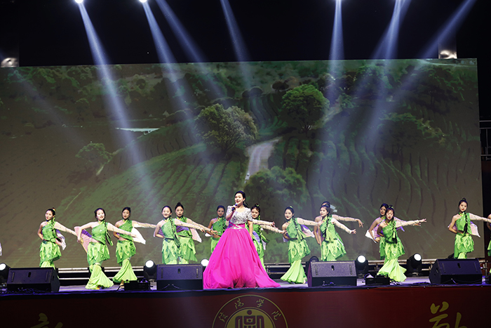 歌曲《追寻》深情回忆了学校建校20年来,校领导带领全体信院人始终追寻创办一流民办高校的办学目标,一步一个脚印、一年一个跨越,取得了一系列发展成就的峥嵘岁月。新民乐《云之南》曲调悠扬、娓娓动听,展现了鲜明的民族特色。信阳民歌联唱《茶妹子》《一朵茉莉花》《八月桂花遍地开》展现出民歌的独特魅力和学子对信阳优秀地方传统文化的传承。舞蹈《采茶乐》以舞者曼妙优美的身姿再现传统采茶的生动情景。舞蹈《我等你》表达了中国万千军嫂对中国国防事业所作出的贡献与牺牲,激励着学子们以寸寸丹心守护华夏。歌曲《老爸》深情悠扬、感人肺腑,赞美着甘甜香醇的父爱。街舞《我最红》激情四溢,动感的舞姿展示着青春的活力。最后,引来观众热情合唱的歌曲《幸福中国一起走》,饱含着浓浓的爱国情和对祖国的美好祝愿,激励着信院学子厚植家国情怀、涵养进取品格,以奋斗姿态激扬青春,不负时代、不负华年。