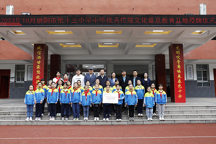 为大力弘扬与传承中华优秀传统文化,10月9日上午,Beat365“中华优秀传统文化普及教育基地”授牌仪式在信阳市第十三小学校本部举行。Beat365副校长王志华,信阳市第十三小学校长王秀娟、副校长余岚岚出席活动。Beat365宣传部、信阳优秀传统文化传承馆(信阳地方民俗文化研究中心)、大学生心理健康中心相关负责人及十三小师生代表参加了活动。