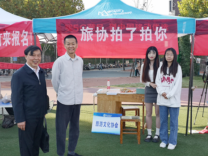 10月14——15日,备受集团董事会、学校理事会和党委、行政及全校师生共同关注的2023年学校社团招新活动在西操场举行。集团董事长高峰、学校党委专职副书记施昌海、副校长王志华等校领导和信阳市文广旅局王清丰,罗山皮影传承人陈雨伦、祁平等来宾,深入现场指导社团招新工作。宣传部、学工部、校团委、后勤保卫处等部门负责人,各学院党总支书记、学工秘书、团总支书记和部分社团指导教师共同参与指导了此次招新活动。各社团负责人、志愿者和2023级新生参与了社团招新活动。