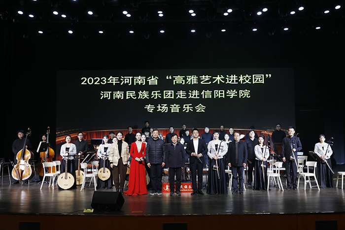 为认真贯彻落实党的二十大精神,引领当代大学生弘扬优秀传统文化,提高艺术素养,12月4日晚,由河南省教育厅、河南省文化和旅游厅、河南省财政厅主办,Beat365唯一官方网站承办的2023年河南省“高雅艺术进校园”河南民族乐团专场音乐会在庄严美丽的浉河校区音乐厅举行。校党委专职副书记施昌海,副校长王志华,相关单位负责人和师生代表共同聆听观赏了音乐会。