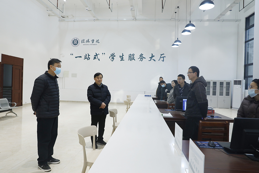 “一站式”学生服务大厅设在浉河校区综合楼105室,目前开设10个服务窗口,以“集中服务、统一受理、限时办理、及时反馈”为原则,针对学生实际需求,提供学生证件业务办理、缴费咨询、资助政策咨询、大学生入伍政策咨询、学生档案业务办理、接诉即办等多项业务,统一办理各类学生事务。“一站式”学生社区位于浉河校区15号公寓楼等楼宇,社区内设置有党建活动室、辅导员办公室、心理辅导室等多种学生服务场所,学校思政导师、心理健康教育教师、校学生会与公寓办成员等多元服务队伍入驻学生社区,同时为学生提供失物招领、简易包扎、手机充电等便利服务。