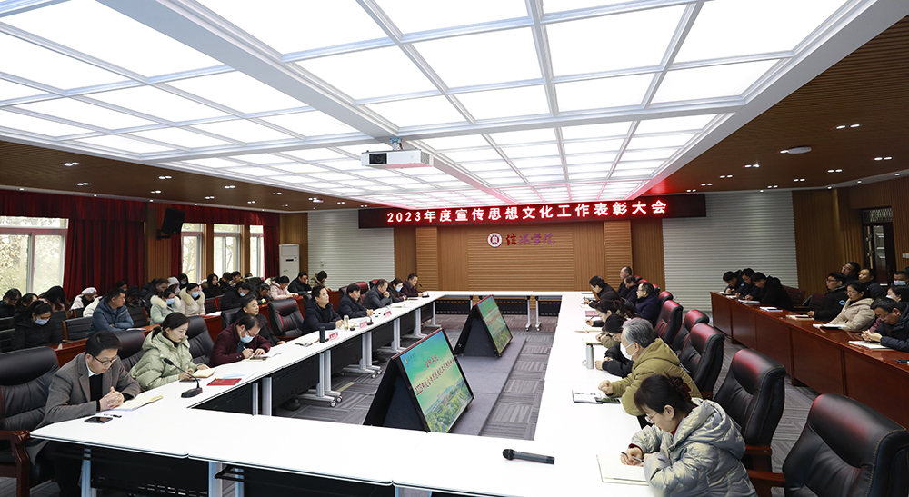 12月28日,学校2023年度宣传思想文化工作表彰大会在人文楼208会议室召开。校党委书记褚金海,专职副书记施昌海,副校长王志华出席会议。校党委委员、纪委委员,各职能部门负责人,各学院党总支书记及获奖师生代表参加了会议。施昌海主持了会议。