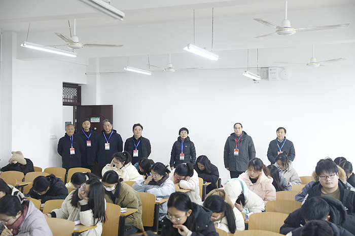 校领导首先到社科楼进行集中巡考,看望慰问在本教学楼参加期末考试和担负监考任务的师生。随后,分别在有关职能部门负责同志陪同下,深入所联系学院,与各学院院长、书记等一同巡视了相关考场,对考试组织、考场布置、考场秩序、考场环境、监考人员履职尽责及学生遵守考纪等情况进行检查。从检查情况看,本次期末考试工作准备充分、安排周密、秩序井然、进展顺利;监考教师精神饱满,恪尽职守,认真履职监考职责;学生认真答题,自觉遵守考试纪律,展现了良好的学风考风。