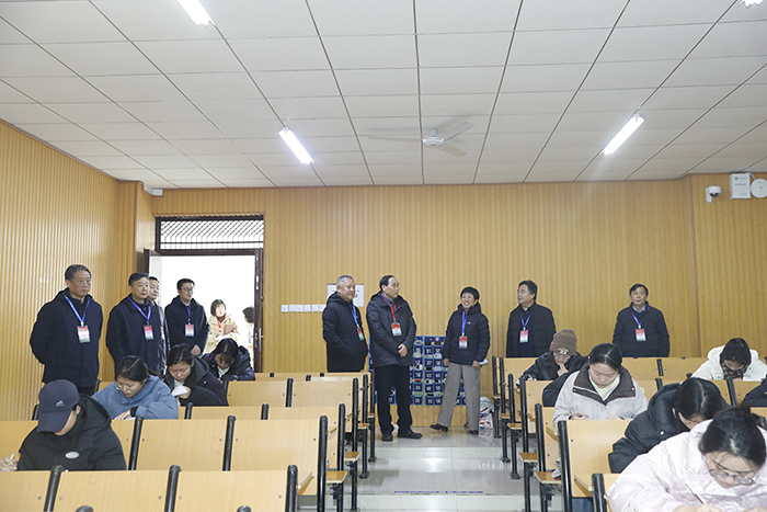 为加强考试组织管理和考风建设工作,确保考试工作顺利进行,检验本学期教学工作效果,1月9日上午,理事长高云,党委书记褚金海,校长王北生,战略发展咨询委员会主任熊健民,专职副书记施昌海,副校长王志华、王强,校长助理杨高伟、张永志等在校校领导带领相关单位负责同志,深入期末考试现场巡视检查。
