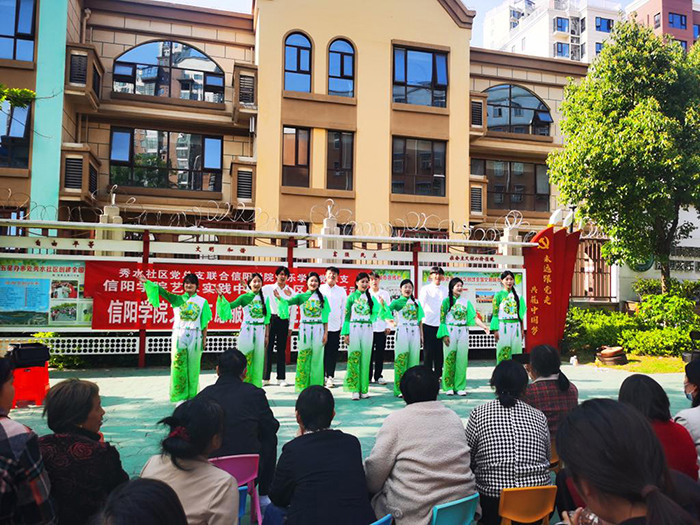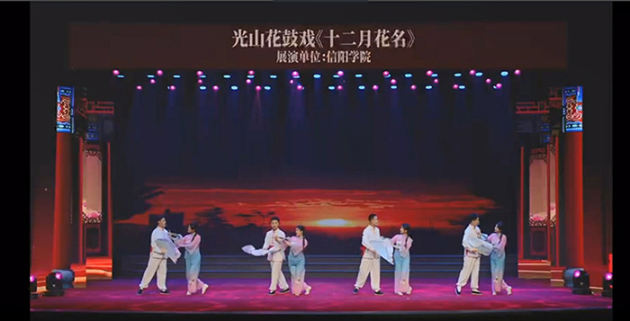 擦亮工作品牌,以文化人有厚度。立足音乐专业特点,将“思政”工作融入艺术创作、艺术实践、艺术服务中,用艺术作品感染人、教育人,做到以美育人、以美化人、以美培元,学院教师创作的歌曲《二十大礼赞》,通过歌曲创作宣讲党的二十大精神,在网易、QQ等平台上广受欢迎。开展了系列思政音乐会,如“音符里的思政”之心悦舞蹈团《忆•久》舞蹈专场暨2023届毕业晚会、视听仲夏、吟唱蝉鸣——视唱练耳教学汇报音乐会、“音符里的思政”之“启航”声乐专场音乐会等,尤其是2024新年音乐会,全院青年骨干教师和优秀学生代表悉数登场演出,节目精彩纷呈。大力弘扬优秀传统文化,举办信阳民歌专场音乐会,排演的光山花鼓戏和罗山皮影戏代表学校在河南大学参加河南省体育艺术传承项目展示周现场展示活动,成为唯一一所学校选送两个节目的单位,双双荣获二等奖。