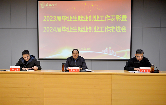 为深入学习贯彻习近平新时代中国特色社会主义思想和党的二十大精神,认真落实2024届全国、全省高校毕业生就业创业工作会议精神,进一步做好学校2024届毕业生就业创业工作。3月19日,学校2023届毕业生就业创业工作表彰暨2024届毕业生就业创业工作推进会在图书馆101报告厅召开。校长王北生、副校长王志华、校长助理杨高伟出席会议。招生就业处、学生处、团委等职能部门负责同志,各学院党总支书记、学工负责人,2024届和2025届毕业生辅导员、受表彰人员以及招生就业处工作人员参加了会议。杨高伟主持会议。