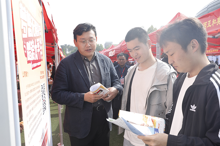 双选会现场人头攒动,毕业生纷纷驻足查看招聘信息,深入沟通岗位需求、详细了解薪资待遇、现场投递个人简历,现场求职气氛浓烈。用人单位招聘人员悉心为前来咨询的毕业生解答疑惑。校领导深入活动现场,向长期支持就业工作的用人单位代表致谢,并鼓励毕业生志存高远、脚踏实地,积极投身到求职实践中,绽放青春光彩。各学院书记、学工负责人和毕业班辅导员也来到现场,积极向用人单位推荐毕业生,做好就业指导服务。双选会现场还设立就业指导咨询台,为毕业生现场进行简历诊断、就业指导和职业生涯规划服务,精心护航毕业生求职之路。