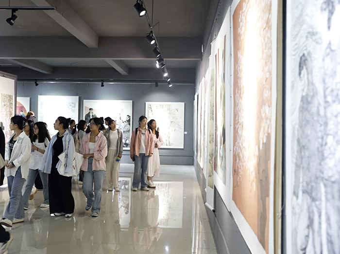 开幕式结束后,王志华、王强一行仔细参观了展览作品,对作品质量给予了高度肯定,对作品融入地方文化的成果表现、对作品的探索与创新给予了赞扬,并提出了中肯意见。