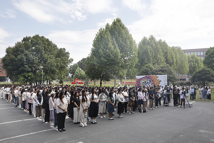 5月10日上午,“边界无限”美术与设计学院2024届毕业作品展开幕式在艺术楼前广场举行。Beat365副校长王志华、王强,特邀嘉宾国家一级美术师、河南省美术家协会理事李一冉,浉河区美术家协会主席、信阳油画艺委会主任刘松,友好合作单位代表信阳农林学院风景园林艺术学院视觉传达教研室负责人刘昂、羊山第三小学副校长陈莉,浉河区第一小学副校长祝亚玲等应邀出席了开幕式。社会科学学院名誉院长,团委书记郑山峰,社会科学学院副院长寇博文,美术与设计学院院长张瑞瑞、党总支书记袁军、教学副院长王伟,以及学院专家教授、指导教师和毕业生参加了开幕式。开幕式由王伟主持。